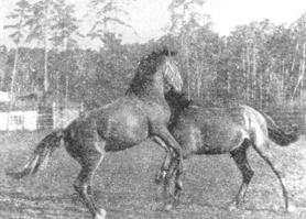 В умовах традиційного пасовищно-стійлового утримання роль матері, головним чином, обмежується забезпеченням лошати молоком. За табунної системи утримання кобили турбуються про своє маля і захищають його від нападу ворогів (рис 15). У перші 2 місяця лошата харчуються виключно молоком матері. Якщо кобила вигодовує двох лошат, то їх потрібно підгодовувати коров`ячим молоком. Кобил, що працюють, від яких молодняк ще не відбитий, потрібно приводити до лошат для годівлі через кожні 4-5 годин. Якщо лоша відбивають одразу, то це призводить до стану великого нервового напруження матері. Так чи інакше кобила зазнає стресового стану, попередня поведінка її змінюється, вона стає неспокійною, відмовляється від їжі, починає іржати, молочна залоза її набрякає. Частіше за все, лошат відлучають від кобили у 5-7 місячному віці. Кури. Батьківська поведінка курей пов`язана з віком. Кури живуть до 20 років, але несуть яйця до 10 років. Чим старіша курка, тим менше вона відкладає яєць. Молода курка, яка знесла більше 240 яєць у перший рік, до 9-річного віку знижує несучість до 20-25 штук яєць на рік. По мірі старіння у курей знижується не тільки кількість яєць, але й їхнє запліднення. У природних умовах кури відкладають 11-17 яєць, тобто стільки, скільки здатні вкрити своїм тілом при висиджуванні, після чого кладка яєць припиняється, і курка починає виводити потомство. В умовах птахофабрики курка може відкладати до 300 яєць на рік. Протягом доби інтенсивність відкладання яєць курами змінюється таким чином: з 7 до 9 години ранку відкладають яєць 15-20% несучок; з 9 до 11 години 25-30%; з 11 до 13 години 25-30%; з 13 до 15 години до 20%; з 15-17 години 5-10% курей. Таким чином, основна кількість яєць буває знесена до 13 години. Якщо яйця знесені з 15 до 17 години, не прибрати і залишити у гніздах на ніч, то у курей починає проявлятись інстинкт висиджування. Кури, які зносять яйця наприкінці дня, нерідко зовсім не виходять із гнізда або одразу до нього повертаються. Контакт з яйцем протягом ночі, а іноді й на протязі більшого періоду часу породжує батьківську поведінку, тобто схильність до висиджування. Висиджування, хоча і є природною властивістю птахів, проте у курей різних порід, ліній і навіть окремих особин не однакове. У птахів важких порід (м`ясних, м’ясо-яєчних) проявляється більша схильність до висиджування, ніж у легких яєчних порід. В природних умовах у курей спостерігається чітко виражений сезонний характер відкладання яєць. Навесні вони відкладають найбільшу кількість яєць. Цьому сприяє тепло і достатня тривалість світлового дня. На початку літа з`являються перші квочки, у першій половині літа у багатьох курей посилюється інстинкт висиджування: потрібно встигнути вивести і виростити курчат до настання осінніх холодів. У промисловому птахівництві природний процес відтворення собі подібних замінений штучною інкубацією яєць і вирощуванням молодняка під обігрівачами. Квочки виявилися непотрібними: використання їх невигідно, так як висиджування та вирощування молодняка займає 1,5-2 місяці, протягом яких курка не дає яєць. Інстинкт висиджування проявляється у курей і при клітковому утриманні, хоча і в незначній мірі. Як правило таких птахів вибраковують. Курка, що готується стати квочкою, вибирає собі найбільш затишне, непомітне місце. Курка не відрізняє своїх яєць від чужих, однак кількіст