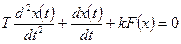 где k - коэффициент передачи; T - постоянная времени, а нелинейный элемент - статической характеристикой yн = F(x). Р е ш е н и е. В качестве координат фазовой плоскости выбираем отклонение управляемой величины x и скорость ее изменения y = dx/dt. Запишем для ошибки x дифференциальное уравнение системы, описывающее ее свободное движение