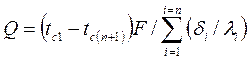 Формула теплопроводности для стенки, составленной из nслоев различных материалов,