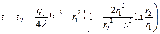 Теплота отводится через обе поверхности трубы. Перепад температур в стенке