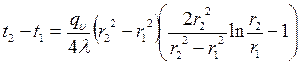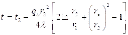 Теплота отводится через внешнюю поверхность трубы. Температурное поле в стенке трубы с внутренним радиусом