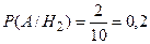 или Эта формула называется формулой полной вероятности. Пример 13. В пяти ящиках находятся одинаковые по размерам и весу шары. В двух ящиках - по 6 голубых и 4 красных шара (это ящик состава H1). В двух других ящиках (состава H2) - по 8 голубых и 2 красных шара. И в пятом ящике (состава H3) - 8 красных и 2 голубых шара. Наудачу выбирается ящик, и из него извлекается шар. Какова вероятность того, что извлеченный шар оказался красным? Решение. Событие, состоящее в том, что «извлечен красный шар» обозначим через А. Из условия задачи следует, что Вероятность вынуть красный шар, если известно, что взят ящик первого состава Н2, будет определяться так: