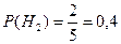 или где Формулы Замечание. Вероятности Р(Hk) (k = 1,2,..., п) событий H1, H2,..., Hn до опыта называются априорными вероятностями (что означает «сперва», т.е. в данном случае до того, как был произведен опыт). Вероятности Р(Hk) (k = 1,2,..., п) тех же событий называются апостериорными (что означает «после», т.е. в данном случае после опыта). Пример 15. В пяти ящиках находятся одинаковые по весу и размерам шары. В двух ящиках - по 6 зеленых и 4 красных шара (по ящик состава H1). В двух других ящиках (состава H2) - по 8 зеленых и 2 красных шара. В одном ящике (состава H 3) - 2 зеленых и 8 красных шаров. Наудачу выбирается ящик, и из него извлекается шар. Извлеченный шар оказался голубым. Какова вероятность того, что зеленый шар извлечен из ящика первого состава? Решение. Обозначим через А событие, состоящее в том, что и i ящика извлечен голубой шар. Из условия задачи следует, что