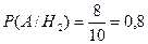 По формуле полной вероятности находим Р(А) = 0,4 • 0,6 + 0,4 • 0,8 + 0,2 • 0,2 = 0,6. По формуле Бейеса найдем искомую вероятность