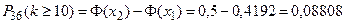 Значение функции локальной функции Лапласа φ(х) взято из таблицы приложений. В случае б) находим вероятность P36(k ≥ 10) того, что работают более десяти приборов. Применяем для решения этой части задачи интегральную теорему Лапласа. Находим сначала значения x1, x2: