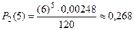 где т/п - доля числа наступивших событий А в п испытаниях, п - число испытаний, р - вероятность наступления события А в одном испытании, ε - величина отклонения доли т/п от вероятности р, q = 1 - р - вероятность ненаступления события А в одном испытании. Для данной задачи А - событие, состоящее в том, что деталь стандартная, п = 400; р = 0,8; q =0,2; Р = 0,9544, величину ε нужно найти. Итак: По таблице- приложений значений функции Лапласа Ф(х) находим, что ε · 50 = 2, следовательно, ε = 0,04. Таким образом, |m/n - 0,8| < 0,04 и 0,76 < т/п < 0,84. Пример 23. Среднее число заявок, поступающих на предприятие бытового обслуживания за 1 час, равно трем. Найти вероятность того, что за 2 часа поступит 5 заявок. Предполагается, что поток заявок - простейший. Решение. По условию λ = 3, t =2, k = 5. Воспользуемся формулой