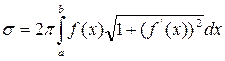 Площадь поверхности, образованной вращением кривой у = f(х), хє[a,b] вокруг оси ОХ, вычисляется по формуле