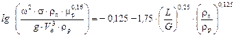 Приклад ІІІ.15. Визначити висоту і діаметр верхньої укріплювальної частини насадкової ректифікаційної колони для розділення суміші метиловий спирт – вода за атмосферного тиску. В колону надходить 1500 кг/год початкової суміші, що містить 40 % спирту і 60 % води. Концентрація дистиляту 97,5 % спирту. В кубовому залишку міститься 2 % спирту (відсотки мольні), флегмове число R = 1,48. Як насадка застосовані кільця 25 × 25 × 3 мм. Колона працює в режимі емульгування. Обігрівання здійснюється глухою парою. Розв’язування. Під час роботи насадкової ректифікаційної колони в режимі емульгування швидкість пари в ній знаходимо з рівняння (ІІ.15). А = – 0,125.