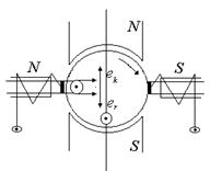 Идея улучшения коммутации сводится к следующему: Секция идет от южного полюса. Дойдя до щетки на нейтрали, секция начнет коммутировать и в ней наведется от скорости изменение тока ЭДС Обмотка дополнительного полюса включается последовательно с якорем. Это делается для того, чтобы с увеличением тока якоря одновременно изменялись ЭДС er и ek.