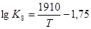 Число ступенів свободи реакції (5) за правилом фаз Гіббса С = К– Ф + 2, С=2 – 1 + 2= 3. Рівноважний стан системи визначається трьома незалежними змінними: температурою, тиском і концентрацією в газовій фазі. Залежність константи рівноваги реакції (5) від температури визначається рівнянням При підвищенні загального тиску газів і пониження температури в системі рівновага в системі зміщується у бік утворення водяної пари. Горіння оксиду вуглецю (II) СО (реакція 3) Реакція горіння СО описується рівнянням: 2СО + О2 = 2СО2 + Q; Δ G 0 = - 565390 + 175,17· Т. Реакція екзотермічна. Константа рівноваги реакції (3) рівна Залежність константи рівноваги від температури визначається рівнянням З підвищенням температури рівновага реакції (3) зміщується в праву сторону.