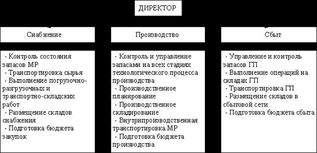 Використання на підприємстві логістичної системи передбачає управління усіма операціями як єдиною діяльністю. Для цього на підприємстві необхідно організувати спеціальну логістичну службу, яка управлятиме матеріальним потоком, починаючи від формування договірних стосунків з постачаннями і закінчуючи доставкою готової продукції споживачеві. Матеріальний потік на шляху від складу матеріальних ресурсів до складу готової продукції проходить в основному виробництві ряд ланок. - планування і контроль - планування випуску готової продукції, - планування транспортних процесів, - планування складської мережі, - контроль бюджету, - інформаційні системи. - управління операціями - на складах, - на транспорті, в процесі обслуговування виробничих процесів. - управління запасами - прогнозування попиту, управління і контроль запасів сировини, напівфабрикатів і готового продукту, - вибір тари і упаковки. Виробничий процес складається з великої кількості елементарних і комплексних логістичних активностей, об'єднаних заданою цільовою функцією. Ця цільова функція зазвичай сформульована на основі маркетингової стратегії і лежить зовні безпосередньо виробничого циклу. Тому ізольований розгляд логістики у виробництві готової продукції(ГП) можливо тільки у тому випадку, якщо задані цілі і обмеження зовнішньою макро- і мікрологістичного середовища. Ці цілі обмеження є основою оперативного об'ємно-календарного планування випуску певного асортименту продукції. Вказані передумови дозволяють сформулювати деякий комплекс завдань внутрішньовиробничої мікрологістичної системи у рамках заданої(прогнозовані і планованими попитом і замовленнями) виробничої програми. Створена на підприємстві логістична служба в особі відділу або однієї людини повинна виконувати наступні функції: - оперативно-календарне планування з детальним розкладом випуску готової продукції; - оперативне управління технологічними процесами виробництва; - загальний контроль якості, підтримка стандартів якості продукції і відповідного сервісу; - стратегічне і оперативне планування постачань матеріальних ресурсів(МР); - організація внутрішньовиробничого складського господарства; - прогнозування, планування і нормування витрати МР у виробництві; - організація роботи внутрішньовиробничого технологічного транспорту; - контроль і управління запасами МР, НП і ГП на усіх рівнях внутрішньовиробничої складської системи і в технологічному процесі виробництва; - внутрішньовиробничий фізичний розподіл МР і ГП; - інформаційне і технологічне забезпечення процесів управління внутрішньовиробничими матеріальними потоками; - автоматизація і комп'ютеризація управління матеріальними(інформаційними, фінансовими) потоками у виробництві. Перерахований комплекс завдань повинен вирішуватися у рамках фірмової логістичної стратегії оптимізації управління матеріальними і супутніми їм потоками з точки зору: - оптимізації(мінімізації) рівнів усіх запасів МР, НП, ГП усередині производственно-технологического циклу і складської системи; - скорочення часу производственно-технологического циклу; - зменшення усіх логістичних витрат у виробництві ГП; - оптимізації роботи внутріфірмового транспортно-складського комплексу. Пропонована структура дозволяє виділити на підприємстві є