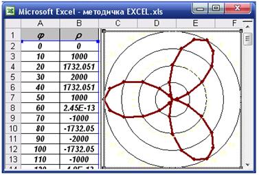 б) Скласти таблицю значень функції (трипелюсткова троянда), яка задана у полярній системі координат: r = a × sin3j, де коефіцієнт а = 2000, а кут j вимірюється у градусах.