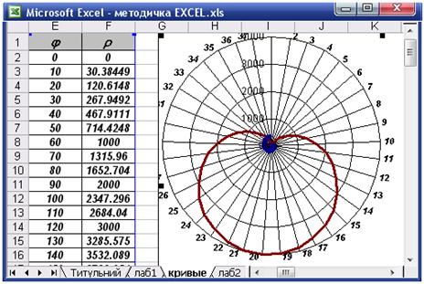 г) Скласти таблицю значень функції (лемніската Бернуллі), яка задана у полярній системі координат: r = a2 cos2 j, де коефіцієнт а = 2000, а кут j вимірюється у градусах.