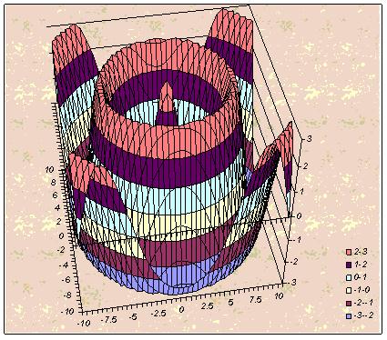 б). Побудувати зображення тривимірної функції, яка називається “Ковбойською капелюхою”, в діапазоні X, Y від –10 до 10 з кроком 0.5 та визначається рівнянням