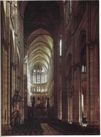 Мы сравнивали романское искусство с византийским и даже с древневосточным. Но существует принципиальное отличие западноевропейской культуры от культуры Востока. Если на Востоке тот или иной стиль господствовал столетиями и тысячелетиями, вполне удовлетворяя общественной потребности, то художественная культура Запада пребывала в непрестанном движении, в беспокойном поиске новых идей и новых решений. Период романского стиля завершился даже раньше, чем подошло к концу XII столетие. Едва недавние новшества в конструкциях сводов и скульптурном декоре вошли в обиход, как стали устаревать под напором более свежих идей. Чисто техническое, на первый взгляд, изобретение, сделанное на севере Франции, положило начало готическому стилю и имело далеко идущие последствия. Дело в том, что в результате последовательного осмысления конструктивных свойств свода на перекрещивающихся арках распахнулись такие перспективы, о которых не догадывались романские зодчие. Если на столбы опираются только арки, а остальная часть свода служит лишь заполнением, значит вся масса стен между столбами также лишняя. Достаточно воздвигнуть своего рода каменный скелет, который держит на себе все здание. Необходимы лишь стройные опоры и тонкие нервюры, все остальное можно убрать, не опасаясь разрушения постройки, а тяжелую кладку стен заменить высокими оконными проемами. Теперь строители церквей стремились создать конструкцию, сходную с той, что применяется ныне в оранжереях. Однако средневековые зодчие не располагали ни стальными рамами, ни железными перекладинами. Все нужно было сделать из камня, а это требовало сложных расчетов. Однако если расчеты делались верно, открывалась возможность храмовых зданий совершенно иного типа - еще не виданных в мире зданий из камня и стекла. В этом и состоит основополагающий принцип готической архитектуры, возникшей на севере Франции во второй половине XII века. Перекрестные нервюры повлекли за собой другие конструктивные преобразования, ставшие предпосылками готического чуда. Так, характерные для романского стиля округлые арки не удовлетворяли строителей нового поколения. Дело в том, что полуциркульная арка допускает лишь один способ перекрытия пролета между двумя опорами: высота свода заранее известна и ее нельзя увеличить или уменьшить. Чтобы сделать свод выше, необходим более крутой подъем арки. Лучшим решением задачи будет арка не полукруглая, а состоящая из двух, обращенных друг к другу, дуг. Так родилась идея стрельчатой арки, преимущество которой состоит в том, что ее конфигурацию можно свободно менять, делать приплюснутой или более заостренной по усмотрению зодчего.