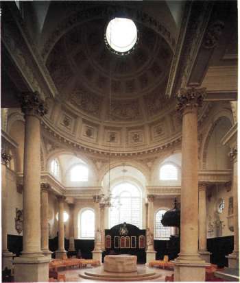 Кристофер Рен лондонской церкви Сент Стивен Уолбрук представляет собой вместительный зал для молитвенных собраний (илл. 300). Назначение такого интерьера - не воодушевить верующих видениями небесного рая, а способствовать внутренней собранности и сосредоточенности во время молитвы. Этот тип зального интерьера строгих форм Рен варьировал и в других церковных сооружениях. В английских усадьбах нет выставленной напоказ роскоши. Аристократия гордилась своим «хорошим вкусом» и старалась соблюдать законы классической архитектуры, как она их понимала. Еще со времен Возрождения архитекторы, занимавшиеся обмерами античных