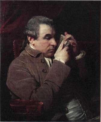303 на ярмарках продавались гравированные серии, рассказывающие о судьбах пьяницы или картежника, те же сюжеты встречались и в книжицах народных баллад. Однако искусство Хогарта проистекало не из этой традиции. Он был прекрасно знаком с наследием европейской живописи, в частности - с приемами голландских жанристов в их преисполненных юмора бытовых сценках с точно обрисованными типажами (вспомним Яна Стена, стр. 428, илл. 278). Из современной ему итальянской, особенно венецианской живописи (Гварди, например, стр. 444, илл. 290) он смог вынести искусство намека, умение передавать объект несколькими касаниями кисти. На илл. 303 представлен заключительный эпизод Карьеры мота: лишившийся разума мот заканчивает свои дни в Бедламе. В этой страшной сцене собраны все разновидности помешательства. В ближайшей к нам камере скорчился на соломенной подстилке религиозный фанатик - пародия на святого отшельника барочной живописи. Далее - человек, одержимый манией величия, с короной и скипетром в руках; идиот, чертящий карту мира на стене; слепец с бумажной трубкой-телескопом. У лестницы - гротескное трио, состоящее из осклабившегося скрипача, певца в дурацком колпаке и трогательной фигуры робко сжавшегося человека, который просто сидит и смотрит в сторону. На переднем плане умирающего мота оплакивает некогда покинутая им девушка. В эти предсмертные мгновения с него снимают кандалы, заменявшие смирительную рубашку. Теперь он свободен. Жестокий трагизм этой сцены усиливается поведением трех наблюдателей - карлицы, шутовски комментирующей происходящее, и двух элегантных посетительниц, знавших героя во времена его процветания. Только в следующем поколении явился английский художник, получивший признание великосветского общества, - сэр Джошуа Рейнолдс (1723 - 1792). Рейнолдс, в отличие от Хогарта, побывал в Италии и вполне разделял убеждение современных ему ценителей, что творцы итальянского Возрождения - Рафаэль, Микеланджело, Корреджо и Тициан - дали миру высшие и недосягаемые образцы подлинного искусства. Он усвоил воззрения, приписывавшиеся Карраччи, то есть считал, что современному художнику не остается ничего другого, как заимствовать у каждого из старых мастеров лучшее: у Рафаэля -его рисунок, у Тициана - колорит и так далее. Позднее Рейнолдс, получив широкое признание и став первым президентом основанной тогда Королевской академии художеств, изложил свою доктрину в речах. Это «академическое» учение небезынтересно и сейчас. Рейнолдс, как и многие его современники (здесь можно упомянуть доктора Самюэла Джонсона), свято верил в две вещи: в неоспоримость авторитета в искусстве и в то, что хороший вкус определяется некой системой нормативных правил. Он полагал, что из признанных шедевров итальянских мастеров можно вывести надежный метод и преподнести его студентам. Его лекции преисполнены проповеднического пафоса, его фразы взмывают к туманным высям великого и прекрасного, которые только и могут стать предметом Истинного Искусства. В своей третьей речи он провозглашал: «Стремление истинного художника должно простираться дальше: вместо старания развлекать людей подробной мелочной тщательностью своих подражаний он должен стараться облагородить их величием своих идей». Рейнолдс, друг Джонсона и людей его круга, принадлежал к интеллектуальной 