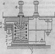 Для зниження дії вібрації на обладнання та людину широко використовують метод віброізоляції - введення в коливну систему додаткового пружного зв'язку, яке послаблює передавання вібрації об'єкту, що підлягає захисту. Для віброізоляції машин з вертикальною збуджуючою силою використовують віброізолюючі опори у вигляді пружин, пружних прокладок (наприклад, гума) та їх комбінації (рис. 2.15).