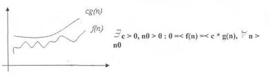 Одним из упрощенных видов анализа, используемых на практике, является асимптотический анализ алгоритмов. Целью асимптотического анализа является сравнение затрат времени и других ресурсов различными алгоритмами, предназначенными для решения одной и той же задачи, при больших объемах входных данных. При анализе поведения функции трудоемкости алгоритма часто используют принятые в математике асимптотические обозначения, позволяющие показать скорость роста функции, маскируя при этом конкретные коэффициенты. Такая оценка функции трудоемкости алгоритма называется сложностью алгоритма и позволяет определить предпочтения в использовании того или иного алгоритма для больших значений размерности исходных данных. В асимптотическом анализе приняты следующие обозначения: 1.Оценка Θ(тетта) Пусть f(n) и g(n) — положительные функции положительного аргумента, n >= 1 (количество объектов на входе и количество операций -положительные числа), тогда:
