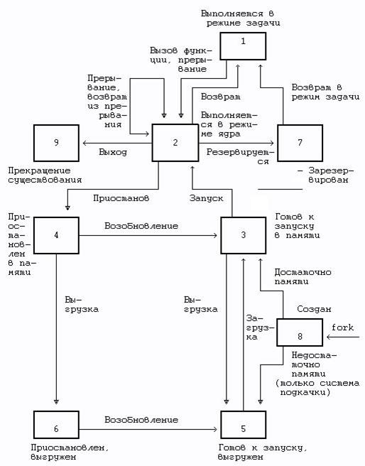 Рисунок 7.3. Диаграмма переходов процесса из состояния в состояние