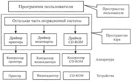 Рис. 7.5. Логическое расположение драйверов устройств