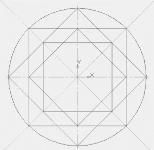 ü соедините точки пересечения квадрата и осей симметрии с помощью непрерывного ввода объекта