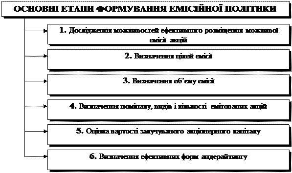 Рис. 7.3. Основні етапи формування емісійної політики підприємства при збільшенні акціонерного капіталу