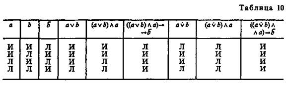 Приведем второй пример. Для этого воспользуемся рассказом «Пестрая лента» А. Конан Дойла. Шерлок Холмс рассказал Уотсону: «Вначале я пришел к совершенно неправильным выводам, мой дорогой Уотсон, — и это доказывает, как опасно опираться на неточные данные. Присутствие цыган, слово «банда», сказанное несчастной девушкой, — всего этого было достаточно, чтобы навести меня на ложный след. Но когда мне стало ясно, что в комнату невозможно проникнуть ни через дверь, ни через окно, что не оттуда грозит опасность обитателю этой комнаты, я сразу понял свою ошибку, и это может послужить мне оправданием. Как я уже говорил вам, внимание мое сразу привлекли вентилятор и шнур от звонка, висящий над кроватью. Когда обнаружилось, что звонок фальшивый, а кровать прикреплена к полу, у меня сразу зародилось подозрение, что шнур служит лишь мостом, соединяющим вентилятор с кроватью. Мне сразу пришла мысль о змее, а зная, как доктор любит окружать себя всевозможными индийскими тварями, я понял, что, пожалуй, напал на верный след. Именно такому хитрому, жестокому злодею, прожившему много лет на Востоке, могло прийти в голову употребить яд, который нельзя обнаружить химическим путем». Отрицающе-утверждающий модус (для случая двучленной разделительной посылки) в виде правила вывода в алгебре логики может бытьзаписан следующим образом: Логический союз «или» здесь может употребляться в двух смыслах: как строгая дизъюнкция (v) и как нестрогая дизъюнкция (v), т. е. характер дизъюнкции на необходимость заключения по этому модусу не влияет. Выводы по этому модусу выражаются четырьмя формулами, которые являются законами логики: 1) 2)