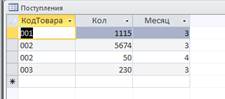 Пример 25. Из таблицы Поступления удалить поле КодПоставщика Результат выполнения запроса