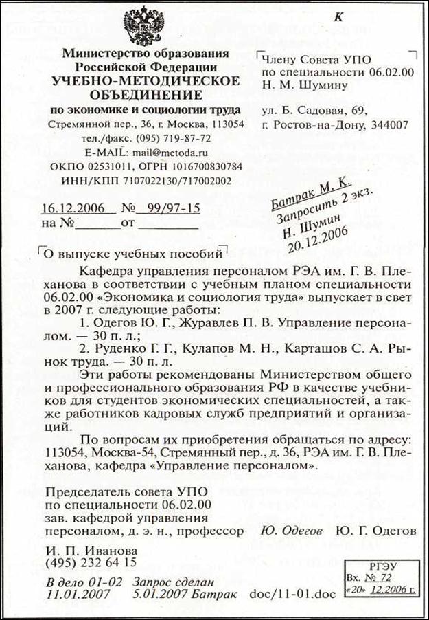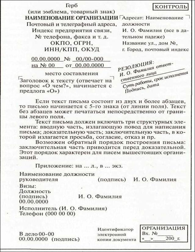 Рисунок В5 – Образец делового письма (угловое центрованное расположение реквизитов) Приложение Г