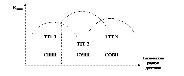Описанное выше математическое моделирование боевых операций ведется при некоторых усредненных параметрах самолетов. В процессе проработки в ОКБ эти параметры могут быть уточнены и ТТТ скорректированы. Анализ возможности реализации ТТТ и его корректировка. Таким образом, концепция самолета может быть предварительно выбрана на стадии внешнего проектирования. Результат решения задачи – область предпочтительного использования самолетов различных концепций и схем. Формирование ТТТ для каждого типа Л.А.