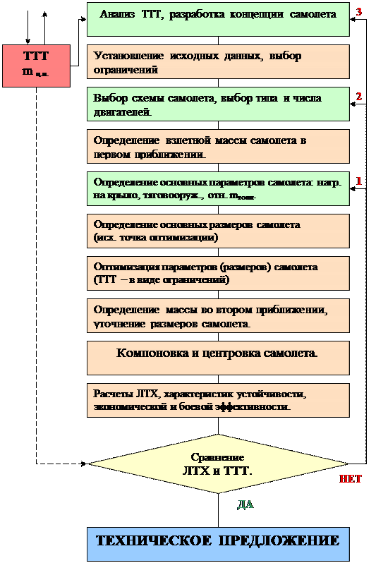 Таким образом, ТТТ задают ограничения на объект решения, т.е. на самолет. Кроме того, при проектировании следует учитывать ограничения на способ решения: степень новизны проекта, сроки проектирования, наличие технических средств автоматизации проектирования и т.д.