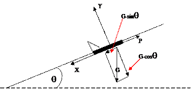 Из схемы: G×sinq = P-X [1] G×cosq = Y [2]