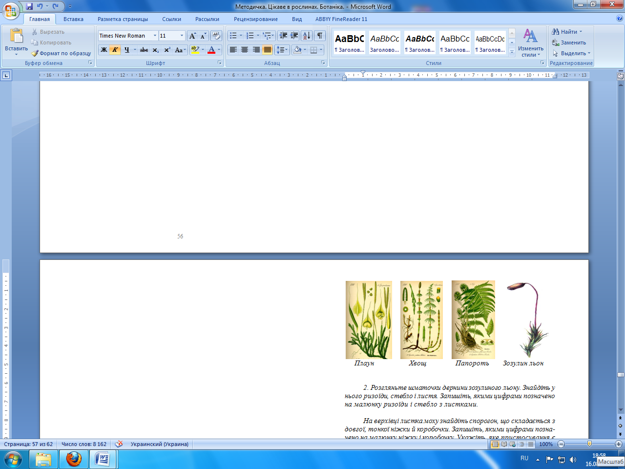 1. Ознайомитися з характерними особливостями будови зелених мохів, на прикладі зозулиного льону.