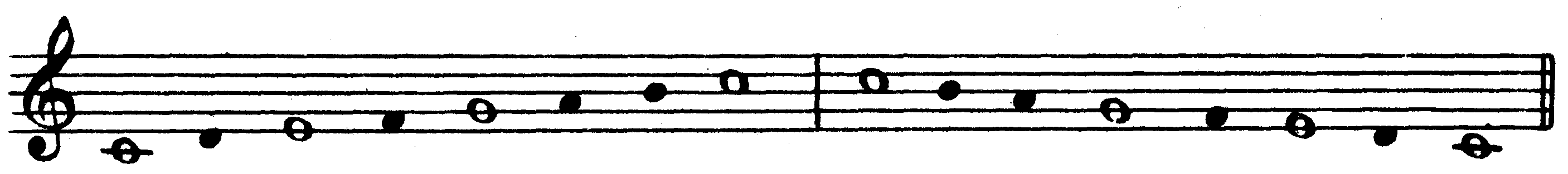 Примечание: Здесь и далее в нотных примерах устойчивые звуки лада будут обозначаться белыми нотами, а неустойчивые — черными. Все ступени лада имеют свои порядковые номера, соответствующие их высотному положению в ладе, и, кроме того, специальные наименования, отражающие их функциональное значение. Ступени лада всегда обозначаются римскими цифрами, а ладовые функции — латинскими буквами, выставляемыми под нотами, к которым они относятся, причем все эти обозначения сохраняются за каждой ступенью лада в данной тональности при любом порядке их расположения и чередования* [Если функции главных ступеней лада (I, IV и V) будут, соответственно, обозначены буквами, то порядковые их номера цифрами уже не проставляются.] Ниже приводятся обозначения и названия ступеней лада по порядку их высотного расположения в гамме: I ступень — называется тоникой, поскольку является примой (основным тоном) тонического трезвучия и определяет наименование самой тональности. В мажоре обозначается прописной (заглавной) буквой Т, в миноре — строчной буквой t; II ступень — называется полунапряженным нисходящим вводным тоном, буквенного обозначения не имеет; III ступень — называется медиантой, так как находится посредине между двумя другими устойчивыми звуками (I и V ступенями), и обозначается в мажоре прописной буквой М, в миноре — строчной буквой т; IV ступень — называется субдоминантой (буквально — нижняя доминанта), так как отстоит от тоники тоже на квинту, но только вниз. Обозначается в мажоре (и мелодическом миноре) прописной буквой S, а в миноре и в гармоническом мажоре — строчной буквой s; V ступень — называется доминантой, так как является наиболее высоким (по местоположению) из всех устойчивых звуков (от лат. dominans, что значит — возвышаться, господствовать). Обозначается в мажоре и гармоническом миноре прописной буквой D, а в натуральном миноре (и мелодическом мажоре) — строчной буквой d; VI ступень — называется субмедиантой (то есть нижней медиантой), так как занимает серединное положение между субдоминантой и тоникой. Обозначается в мажоре заглавными (прописными) буквами SM, а в миноре — строчными буквами sm; VII ступень — называется (в натуральном мажоре и гармоническом миноре) напряженным восходящим вводным тоном, буквенного обозначения не имеет. 96