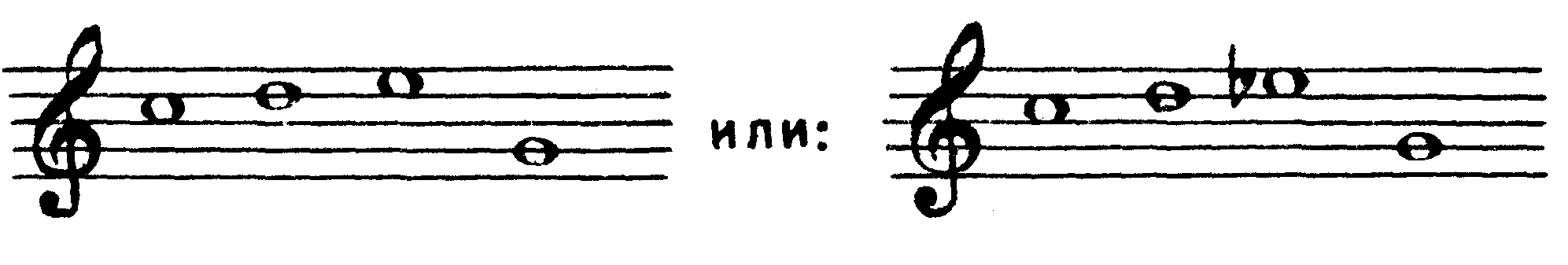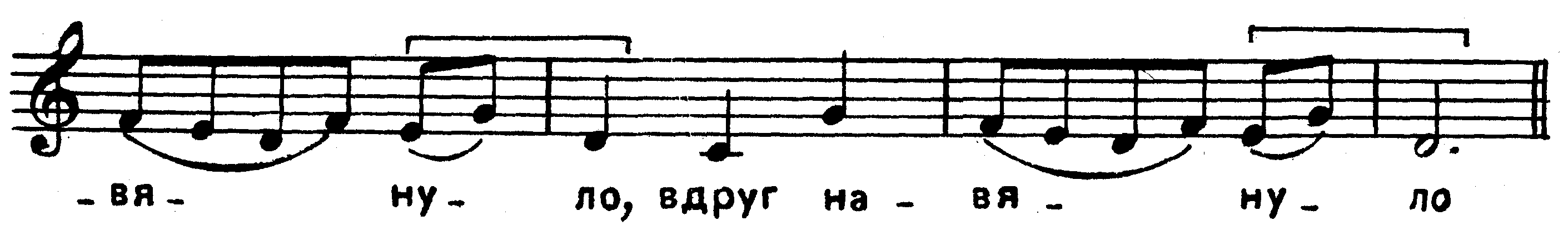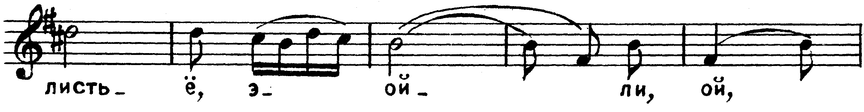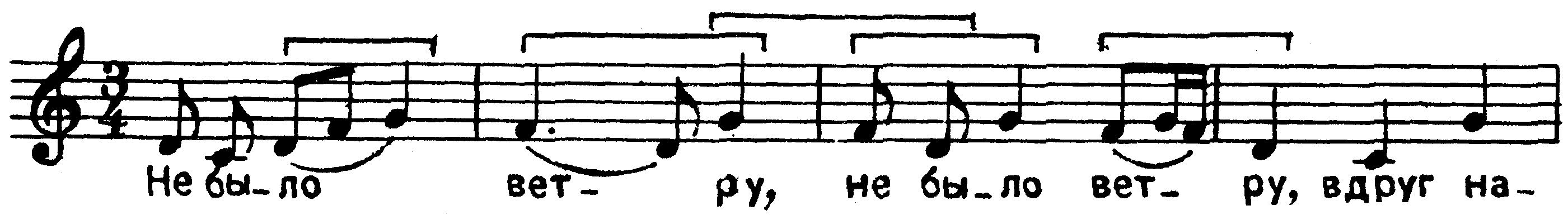 Пентатоника в русской народной песне встречается относительно редко, главным образом в старинных образцах. Наиболее своеобразны я типичны так называемые три хорды, представляющие собой трехзвучные попевки, образованные малой терцией и большой секундой в объеме чистой кварты: 154 В приведенном ниже примере отмечены трихордные попевки: 155 Русская народная песня «Не было ветру»