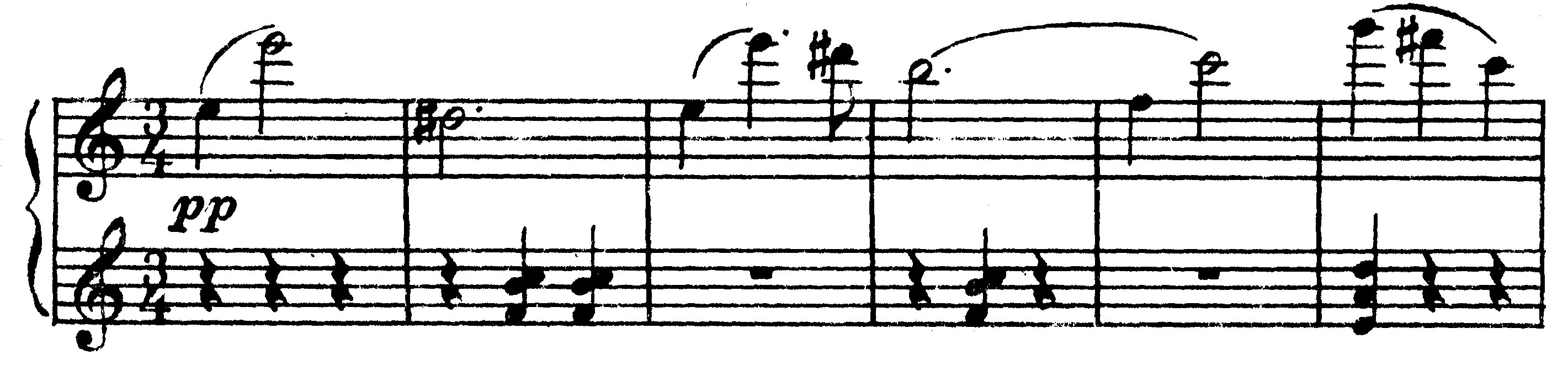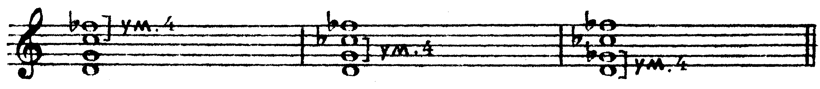 ум. VII10/4 (Es-dur) ум. VII10/4 (Es-dur) ум. VII10/4 (es-moll) ум. II10/4 ум. IV Примечание: В приведенном примере второй аккорд по звучанию энгармонически равен секундаккорду малого минорного септаккорда. В современной музыке аккорды с квартовой структурой встречаются, довольно часто как в основном виде, так и в обращениях, Например: