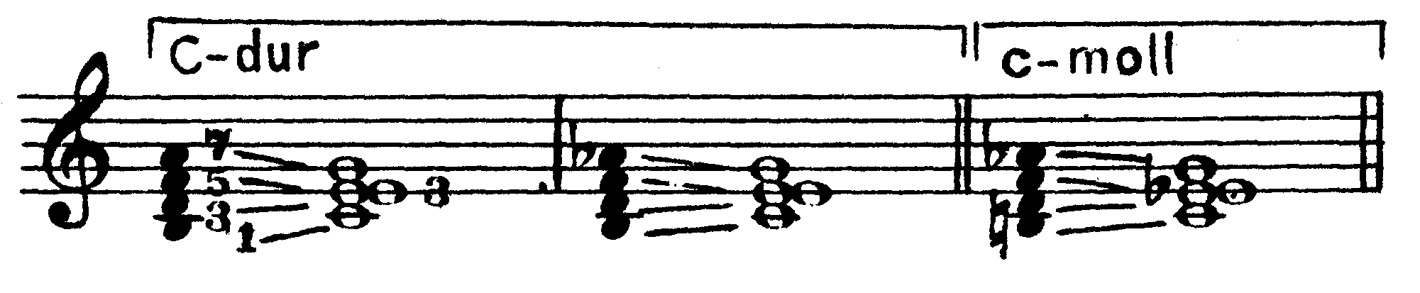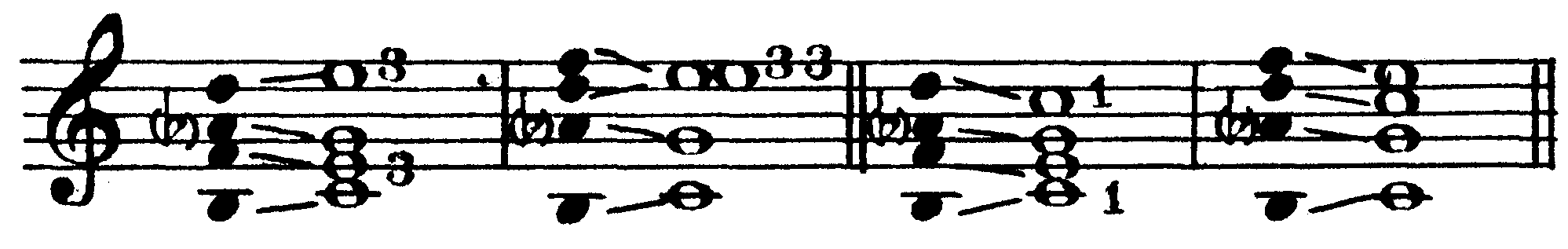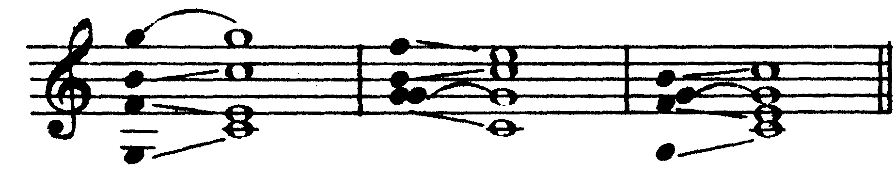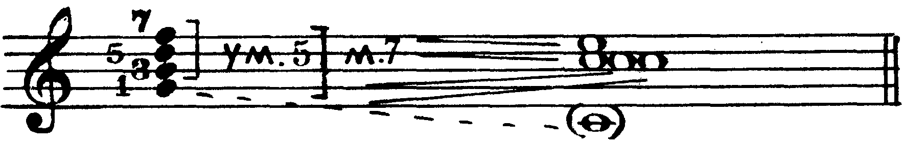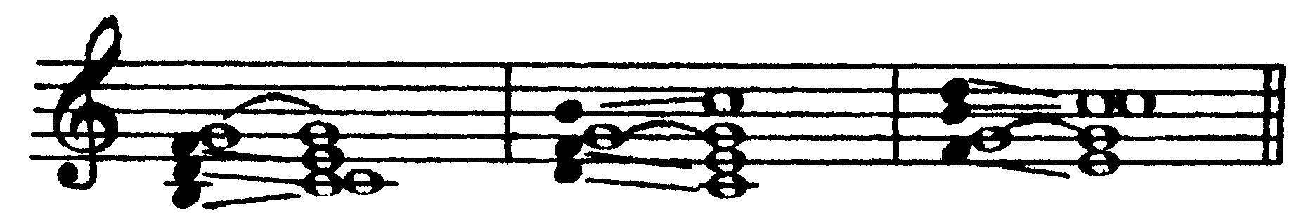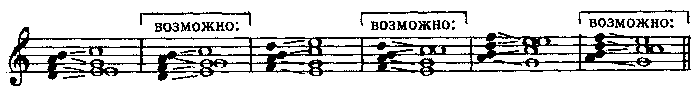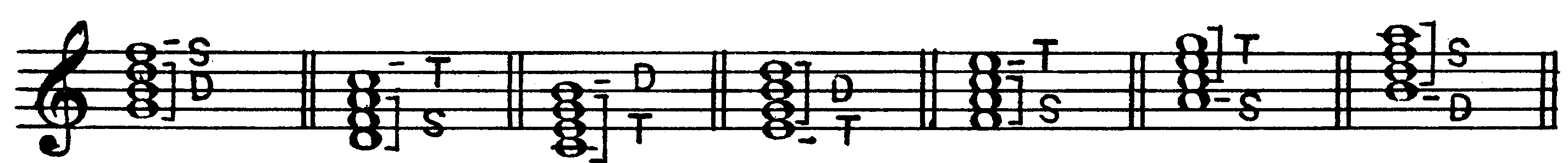 I6/5 (T6/5) III4/3 IV7 VI2 Все септаккорды являются диссонирующими созвучиями, требующими акустического разрешения. Кроме того, любой септаккорд неустойчив и в ладовом отношении, так как содержит в себе хотя бы один неустойчивый звук. Следовательно, всякий септаккорд является бифункциональным созвучием (то есть содержит в себе звуки двух разных функций) и может быть разрешен в любое консонирующее трезвучие, кроме тех двух, из которых он образован. Так, например, доминантсептаккорд включает в себя три звука доминанты и один звук субдоминанты, а разрешается в тоническое трезвучие; септаккорд второй ступени состоит из трех звуков субдоминантовой гармонии и одного тонического, а разрешается в трезвучие доминанты; тонический септаккорд, образованный из трех звуков тоники и одного доминантового, разрешается в трезвучие субдоминанты (IV ступени) и т.д. Например, в до мажоре: 225 D7 (V7) II7 I7 (T7) III7 IV7 VI7 VII7 Разумеется, наряду с диссонантностью звучания, бифункциональность септаккордов еще более усиливает их напряженность и тяготение к разрешению в соответствующее трезвучие. Существуют два принципиально различных способа разрешения септаккордов: автентическое и плагальное. Для автентического характерно ведение септимы на ступень вниз, а при плагальном разрешении септима остается на месте. В конечном итоге любой септаккорд может быть разрешен тем или иным способом, однако более ярко выраженная функциональная принадлежность септаккордов в условиях конкретного лада и тональности определяет один из этих способов как основной для данного септаккорда, и прежде всего это относится к септаккордам V, VII и II ступеней, являющимся главными представителями диссонирующих гармоний, которые выражают, соответственно, доминантовую или субдоминантовую функцию. а) Разрешение септаккорда V ступени (D7). Основным способом разрешения доминантсептаккорда является автентическое разрешение. Доминантсептаккорд (D7) содержит в себе два диссонирующих интервала — малую септиму и тритон (ум. 5), ладовое положение и направленность тяготений которых (как, впрочем, и всех звуков доминантсептаккорда) приводит к естественному, то есть наиболее ясному и простому разрешению их в звуки тоники со следующим голосоведением: квинта и септима D7 идут на ступень вниз соответственно в приму и терцию тоники, терция D7 — на ступень вверх в приму тоники, а основной тон движется скачком на кварту вверх (или квинту вниз) также в приму тоники. Таким образом, основной вид полного доминантсептаккорда разрешается в неполное тоническое трезвучие с пропущенной квинтой и утроенной примой: 226 D7 T(-5) Впрочем, при ином расположении звуков (терцовый тон D7 в таком случае должен быть взят непременно в одном из средних голосов и находиться с басом в разных октавах) возможно и более свободное разрешение полного доминантсептаккорда— в полное тоническое трезвучие с удвоенной примой. Терция D7 при этом идет не на полтона вверх (то есть, как обычно, в приму тоники), а против своего тяготения — на большую терцию вниз — в квинту тоники: 227 D7 T(-5) D7 T Доминантсептаккорд может быть также взят и в неполном виде— как правило, без квинты, пропуск которой в фоническом отношении мало отражается на его звучании в целом. В таком случае вместо недостающей квинты в одном из трех верхних голосов удваивается основной тон доминан