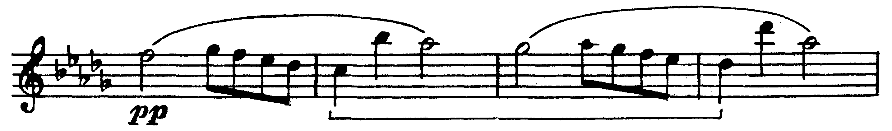 Ладовая основа мелодии придает звуковысотной линии осмысленность, организуя и соподчиняя друг другу ее звуки. Вне лада мелодия, особенно если она достаточно протяженная, не может существовать. Если отдельные звуки не соподчинены, то мелодическая линия становится случайным набором звуков, не связываемых в одно целое. Внеладовая мелодия, которую можно встретить и некоторых современных произведениях (например, использующих технику додекафонии), как правило, отличается отсутствием широкого дыхания, напевной протяженности. Такая мелодия обычно легко распадается на отдельные достаточно изолированные мотивные образования. Ладовая основа проявляет себя далеко не только в том, что входящие в мелодию звуки принадлежат тому или иному ладовому звукоряду. Нельзя понимать ладовую основу и как движение мелодии, совпадающее с направлением ладовых тяготений. Сплошь да рядом отдельные звуки лада «ведут себя» совсем не так, как в схеме ладовых тяготений, однако и в этих случаях значение ладовой организации огромно. Так, например, в следующей мелодии обращает на себя внимание неразрешенный вводный тон до в конце первой фразы: 307 [Lento] Ф. Шопен. Соната b-moll, ч. III