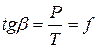 Рис. 20. Схема определенного угла трения Тогда Природу трения можно объяснить как результат взаимного зацепления неровностей инструмента и деформируемого тела. При контактировании эти неровности сминаются, истираются, образуются новые поверхности. Эти поверхности сближаются, образуются условия молекулярного взаимодействия соприкасающихся металлов. Параметрами, определяющими коэффициент трения являются: состояние поверхностей контактируемых тел, их количественный состав, температура и скорость деформации, удельные усилия, смазка. При увеличении шероховатостей инструмента коэффициент трения увеличивается. Шероховатость при ОМД не остается постоянной, поэтому изменяется и коэффициент трения. Состояние поверхности деформируемого тела, определяемого видом предварительной обработки (горячая или холодная деформация, наличие окалины, травление) существенно влияет на коэффициент трения. При тщательной очистке поверхности коэффициент трения падает и в условиях больших давлений возможно даже сваривание поверхностей. Химическое сродство деформируемого тела и металла инструмента определяет величину коэффициента трения. При этом, чем мягче металл, тем выше коэффициент трения. Смазка контактных поверхностей уменьшает коэффициент трения и влечет за собой заметное падение энергосиловых параметров ОМД, снижает износ инструментов. Смазка заполняет шероховатость поверхностей, образует адсорбционную пленку, снижает прилипание. По мере роста температуры металла коэффициент трения увеличивается. Это связано с облегчением заполнения шероховатостей рабочего инструмента деформируемым металлом. Однако для сталей при температуре выше