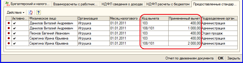 Рис. 8.21. Регистр «Предоставленные стандартные вычеты по НДФЛ»