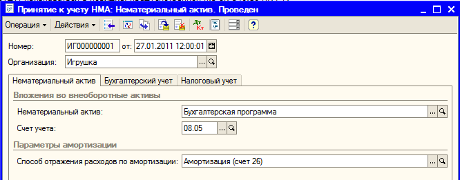 Рис. 9.21. Принятие к учету НМА
