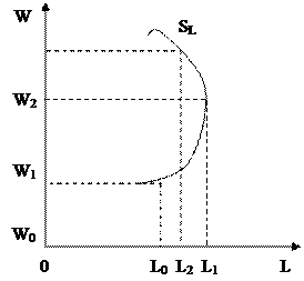 В силу этого положительный наклон кривой индивидуального (SL) предложения труда при определенном уровне W сменяется отрицательным.