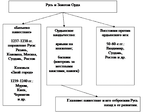 Исторические деятели периода: Рюрик; Олег; Игорь; Ольга; Святослав; Владимир; Ярослав Мудрый; Владимир Мономах; Даниил Галицкий, Ярослав Всеволодович; Александр Невский; Иван Калита; Даниил Александрович; Сергий Радонежский; Дмитрий Донской; Василий II, Иван III, Чингисхан; Бату; Мамай; Ягайло; Тохтамыш; Ахмат. Основные положения проблемы: Происхождение восточных славян. Сущность «норманнской» теории и ее критика. Возникновение Киевской Руси. Первые русские князья и их деятельность. Социально-экономическое развитие государства.