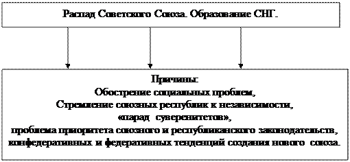 В декабре 1991 г. руководители четырех республик СССР — России, Украины, Белоруссии («учредители» СССР в 1924 г.) и Казахстана подписали «Беловежские соглашения». Было образовано Содружество Независимых Государств (СНГ) — как объединение бывших республик СССР. Начался новый период и в истории России как самостоятельного государства.