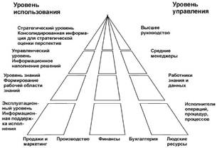 Иерархическое управление предприятием требует, чтобы информационные системы имели соответствующие уровни разделения и использования информации: эксплуатационный, знания, управленческий и стратегический.