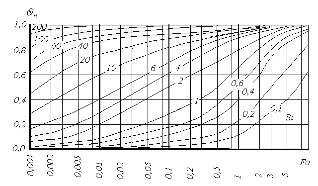 Рис. 3. Безразмерная температура на поверхности цилиндра