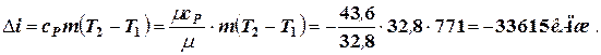 Внутрішня енергія при розширенні зменшується. Зміну ентальпії суміші при політропному розширенні знаходимо за загальним виразом: