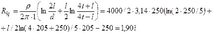 Рассчитывается сопротивление очага заземления по формуле
