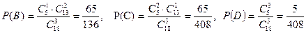 В, С, D оқиғаларының ықтималдығын табалық: